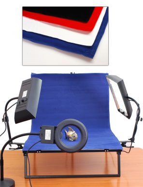 Mesa de reproducción 41x50cm.con lámparas 240 led´s (1200 lumen c/u) potencia ajustable, columna de 74cm con piñón y cremallera para ajuste fino de magnificación, zapata rápida para cámara, altura máxima 80cm.