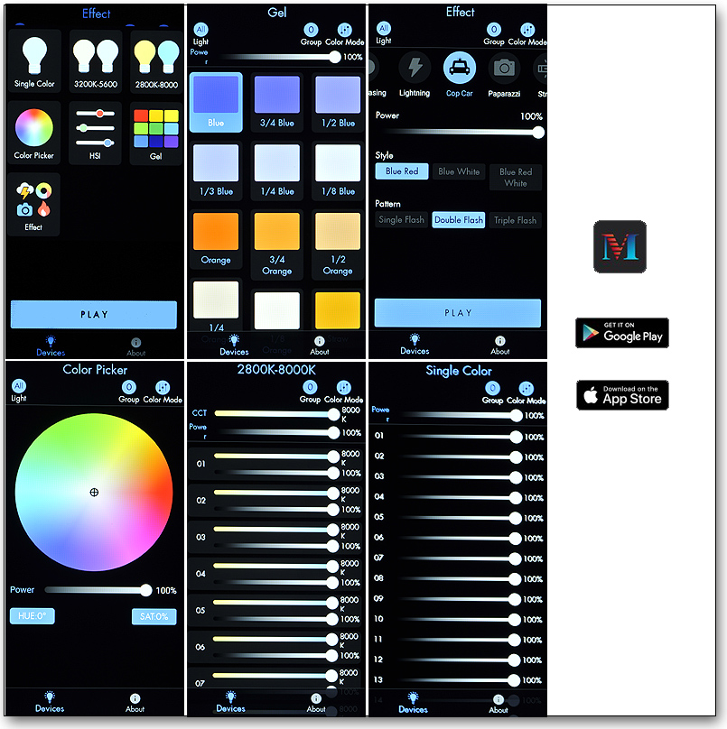 Mettle RGBW Tube Lite X4, cuerpo de aleación de aluminio, Modos:CCT 2800-8000K, HSI, ColorPicker, 48 Geles y Efectos FX variables, LUX/1m.:745, CRI 95+ TLCI 97+, Batería incorporada Li-Ion 14,8v. 5000mAh, Control vía Panel, DMX (mini XLR 3 pin) o Bluetooth APP IOS o Android, Master/esclavo y grupos hasta 99 canales,